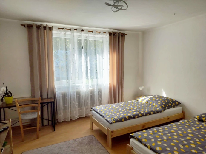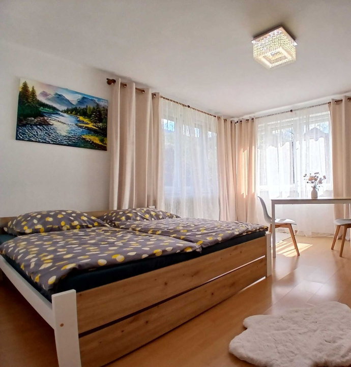 Apartmán ponúka celé samostatné poschodie len pre Vás, s vlastným vchodom. K dispozícii sú tri útulné spálne, pričom každá je vybavená televízorom s viac ako 150 TV kanálmi a službou Netflix.