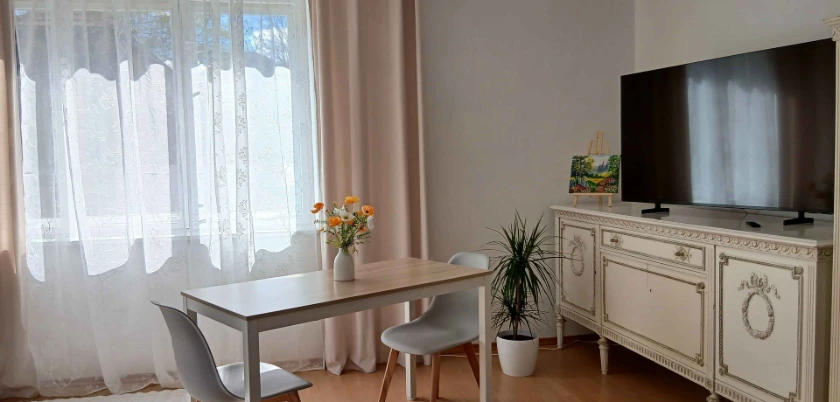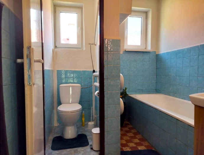 Súčasťou apartmánu je plnohodnotne vybavená kúpeľňa s toaletou a praktická kuchyňa, v ktorej nájdete mikrovlnnú rúru, rýchlovarnú kanvicu a mini chladničku. Z kuchyne sa dostanete na balkón, kde si môžete vychutnať rannú kávu alebo chvíľu oddychu.